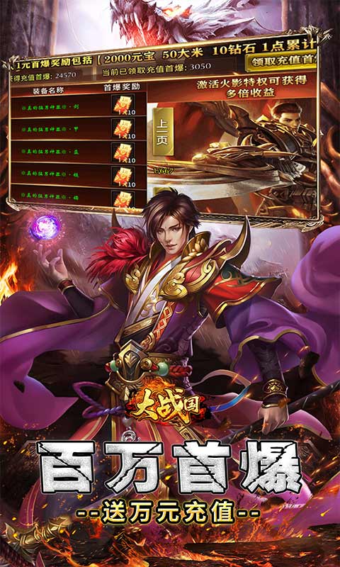 1、上线重生2选1,更有无限分身启航套装伴君而行!上线属性数十万亿!超爽超炸裂! 2、刀刀爆充值,红包爆满地!砍瓜切菜也可激活顶赞神豪+冠名! 3、全屏分身术,属性暴涨!暴涨!免费的爆率透视,公开透明可见怪物产出红包! 4、百万首爆,上线半小时,白漂上万米!充值送送送! 5、1米当上大老板!送终极透视戒指,开启火眼金睛,透视高阶材料终极装备!更送终极全屏分身术!