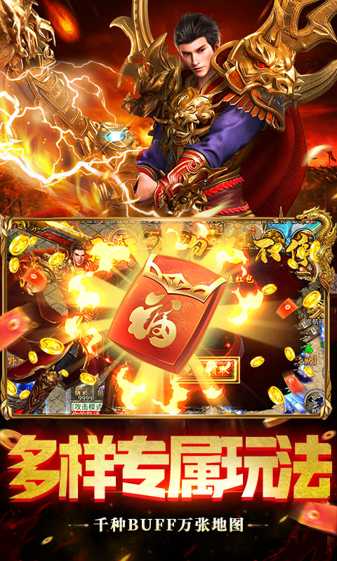 1.开局福利:开局送超级灵蛇成长神器,范围拾取、刀刀绿毒、新人称号爆率+30%,切割+8888、打野神剑、天天648红包 2.免费赞助:免费赠送赞助,新人爽不停 3.在线福利:每天在线领充值红包,各种红包和道具拿到手软 4.七日登录:七天登陆送超多材料和红包,再送“青萍剑客”精美时装 5.等级奖励:达到等级额外领取超级奖励、终极首饰免费送 6.每日礼包:每日上线免费领取200W元宝 7.大陆专属:一怪一专属,每个怪都会爆出对应的专属装备,BOSS光柱爆满屏